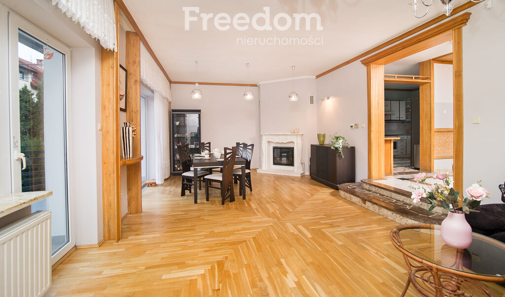 się również, garderoba, gabinet i dwa pokoje z balkonem.