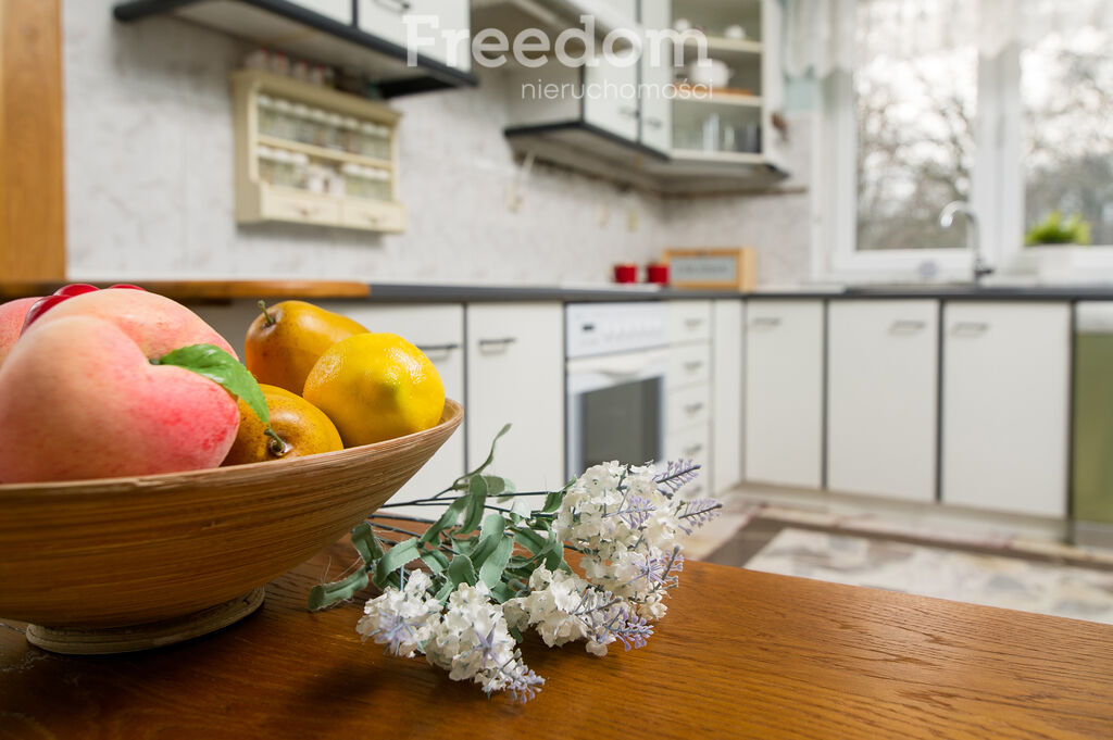 słoneczne. Obok salonu znajduje się przestronna kuchnia z częścią