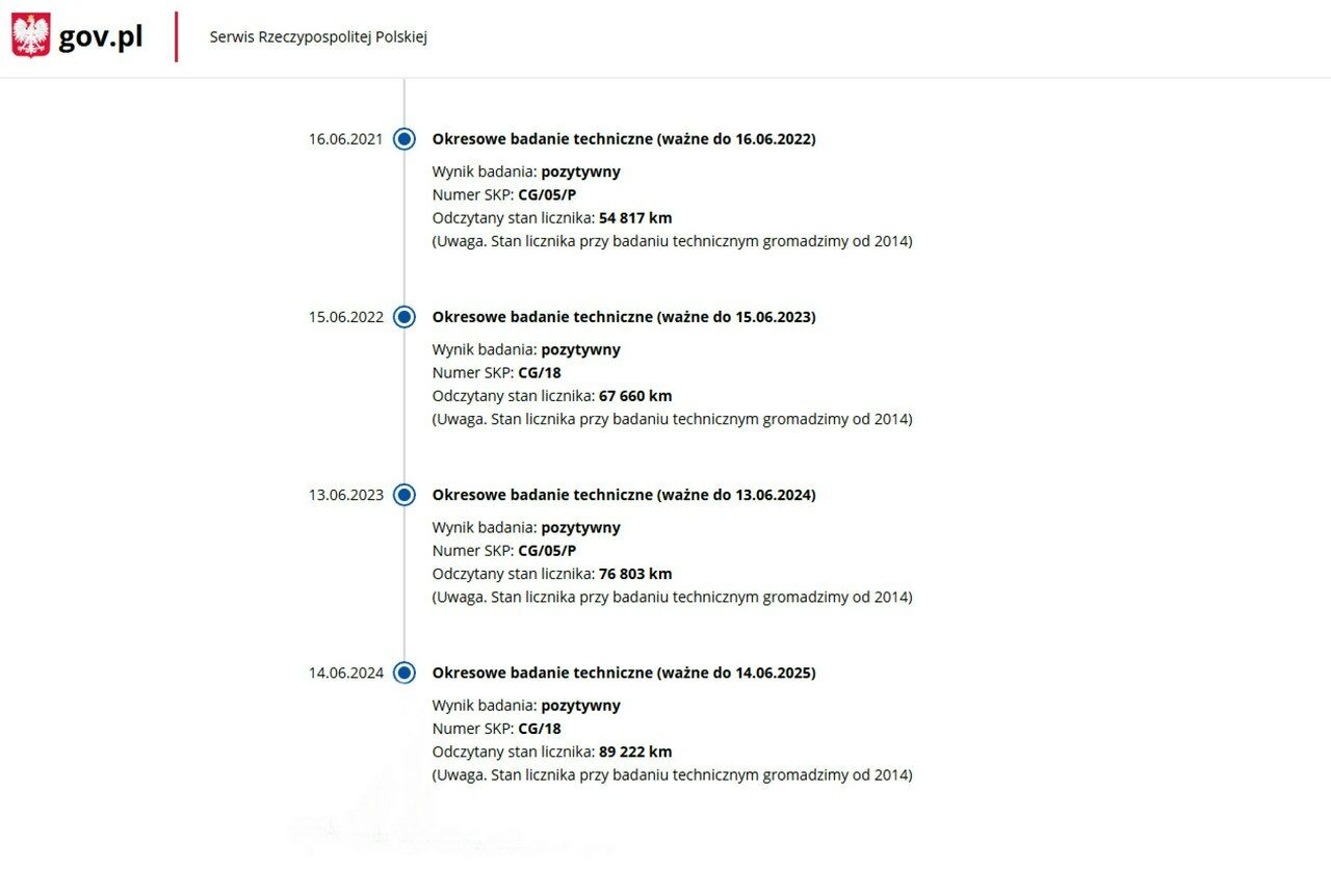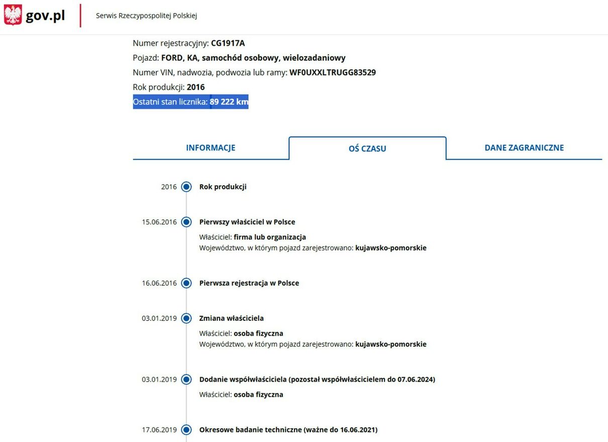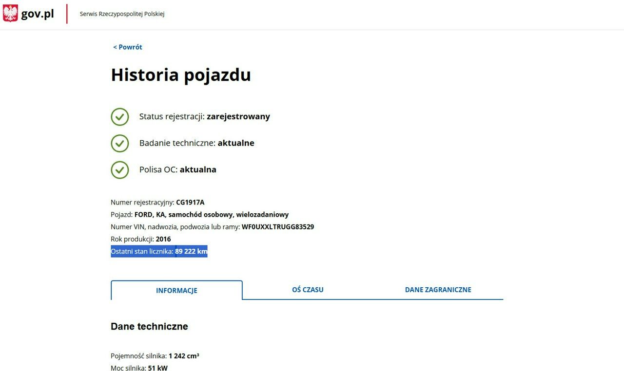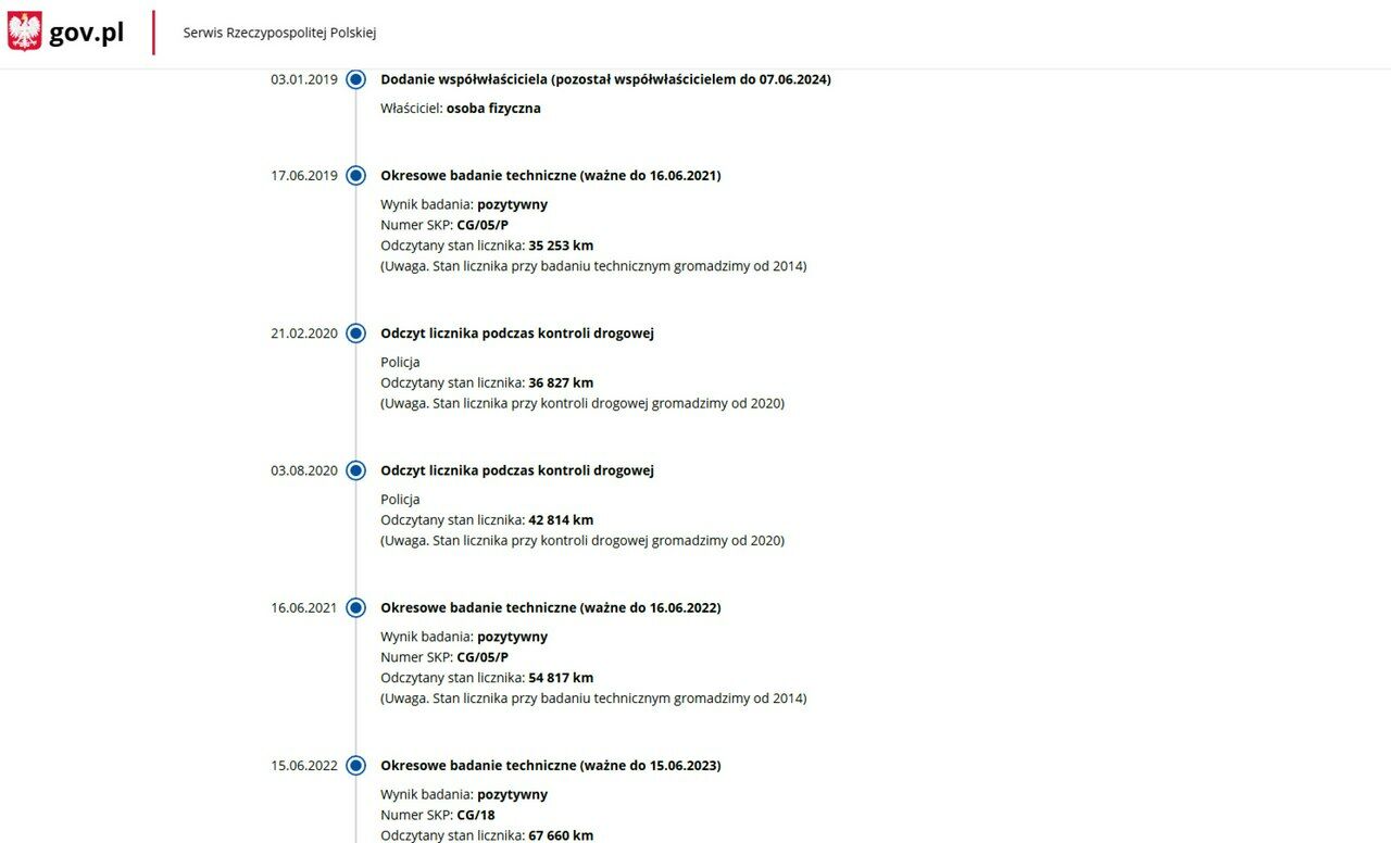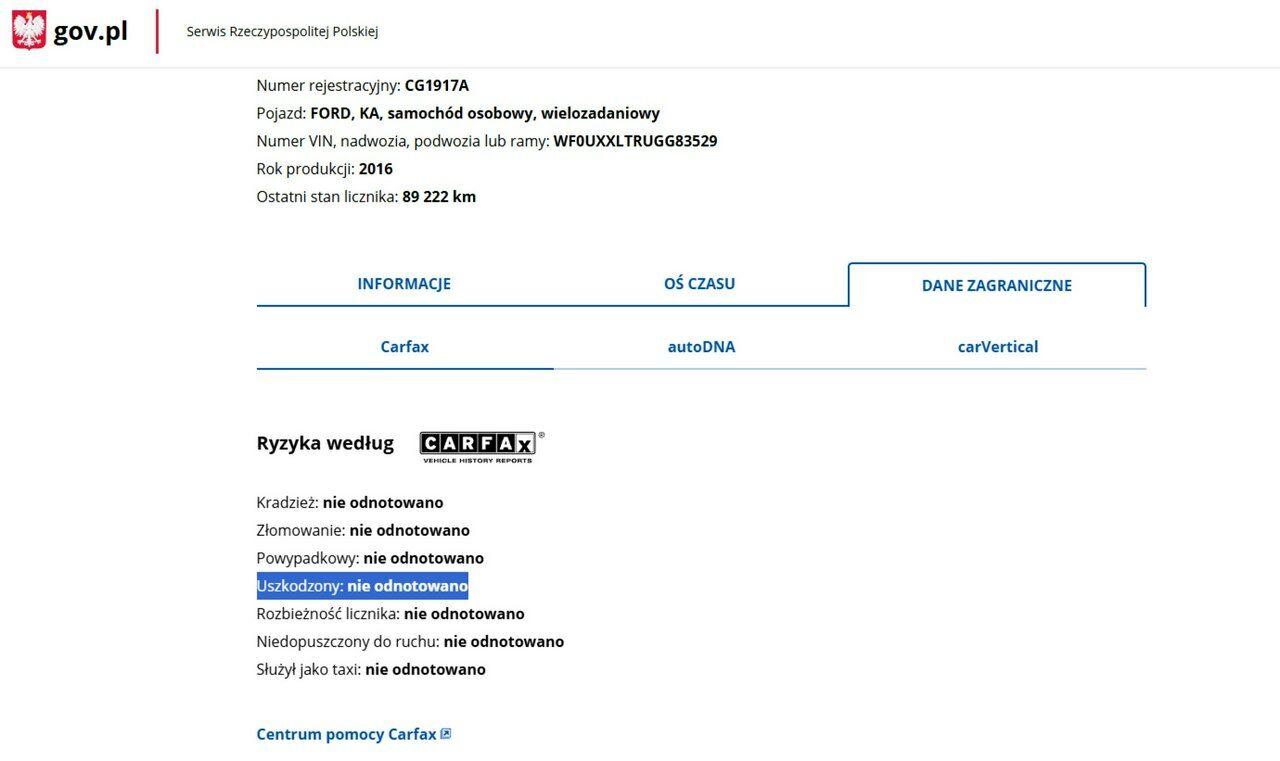 PONIŻEJ PODAJE DANE NIEZBĘDNE DO DARMOWEJ WERYFIKACJI HISTORII PREZENTOWANEGO AUTA NA STRONIE MINISTERSTWA TRANSPORTU