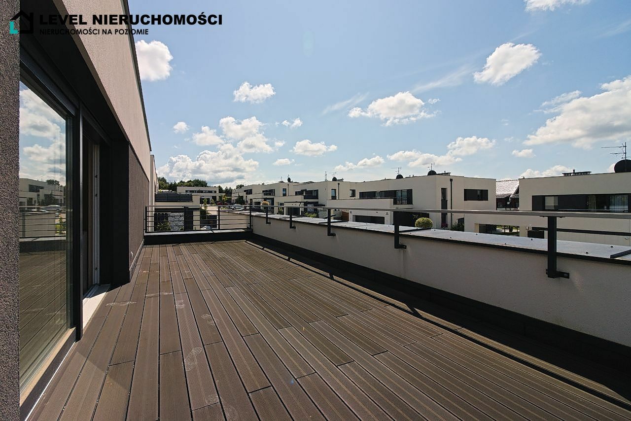 Piętro domu składa się z trzech sypialni, garderoby, łazienki oraz tarasu o powierzchni 30 m2.