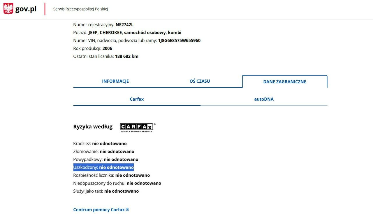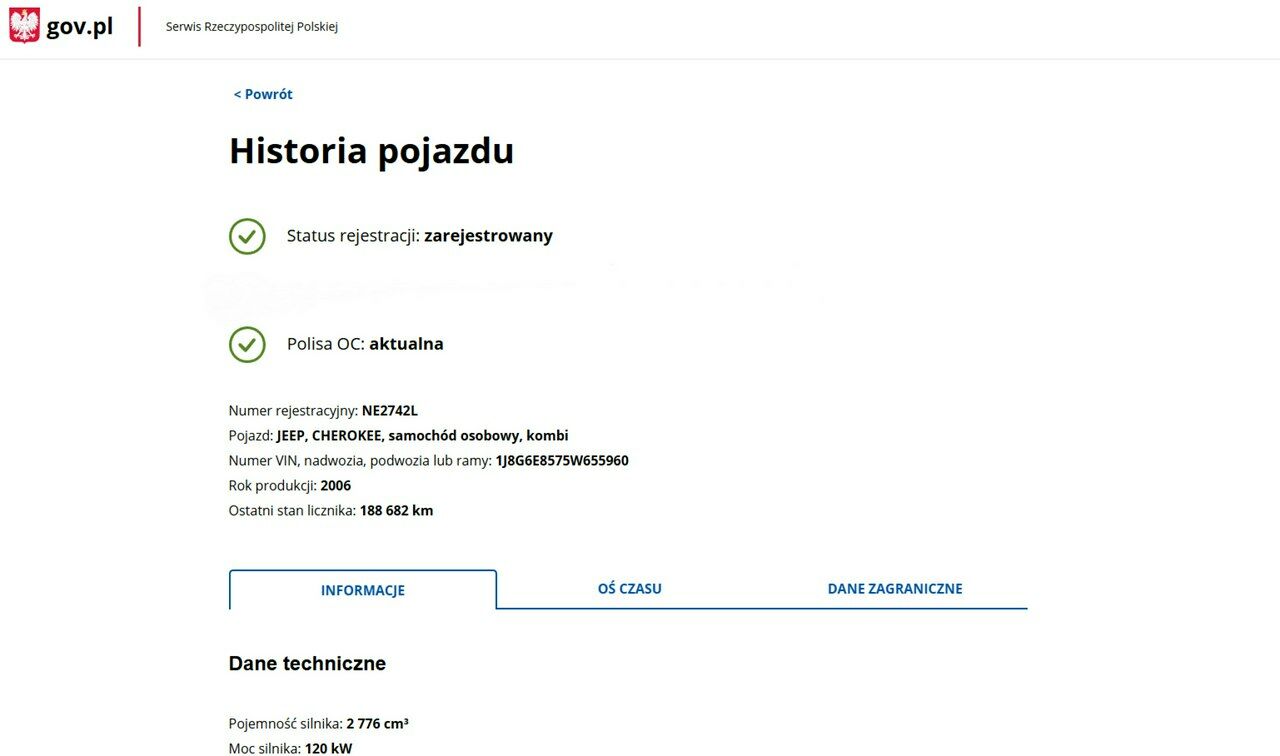 PONIŻEJ PODAJE DANE NIEZBĘDNE DO DARMOWEJ WERYFIKACJI HISTORII PREZENTOWANEGO AUTA NA STRONIE MINISTERSTWA TRANSPORTU