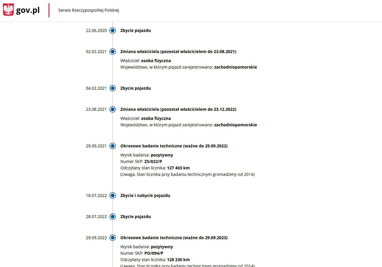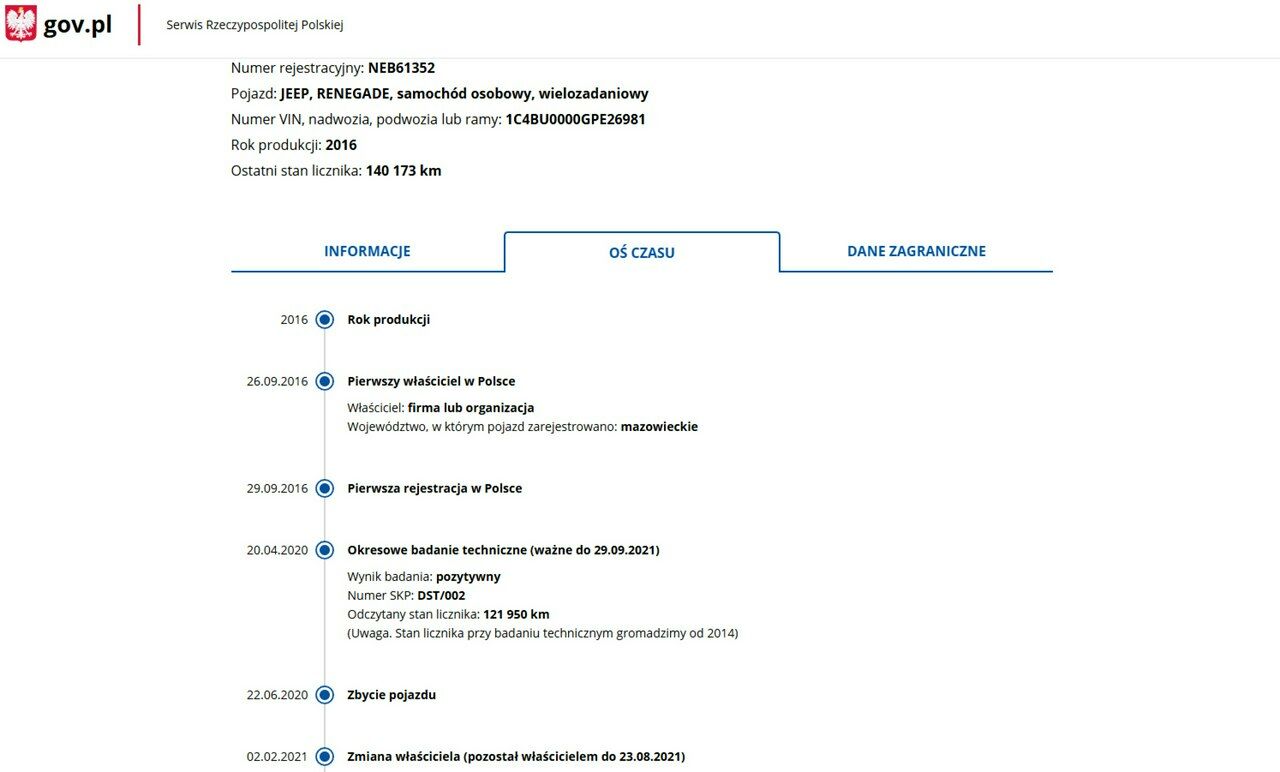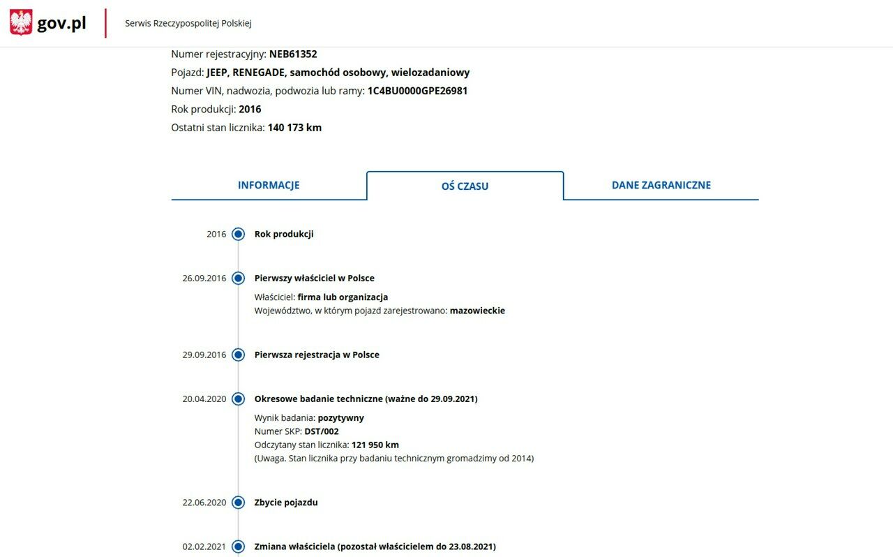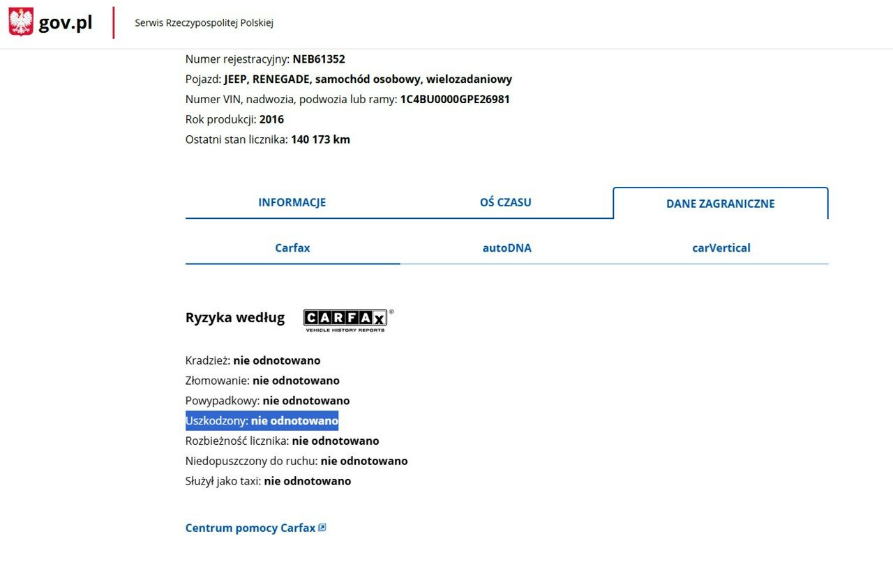 PONIŻEJ PODAJE DANE NIEZBĘDNE DO DARMOWEJ WERYFIKACJI HISTORII PREZENTOWANEGO AUTA NA STRONIE MINISTERSTWA TRANSPORTU