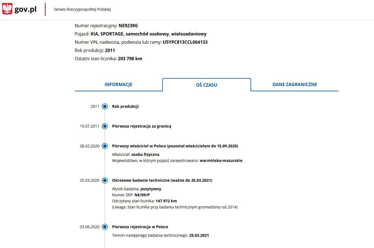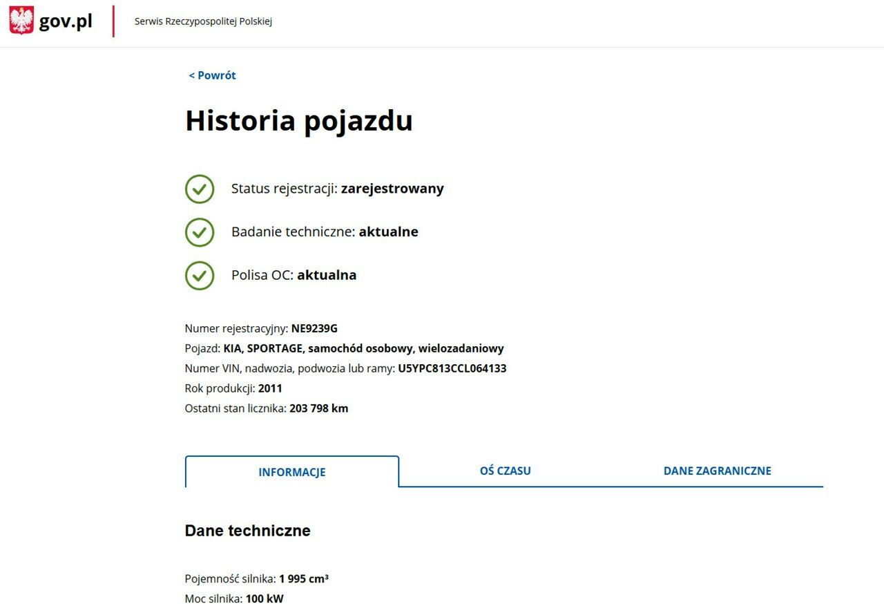 PONIŻEJ PODAJE DANE NIEZBĘDNE DO DARMOWEJ WERYFIKACJI HISTORII PREZENTOWANEGO AUTA NA STRONIE MINISTERSTWA TRANSPORTU