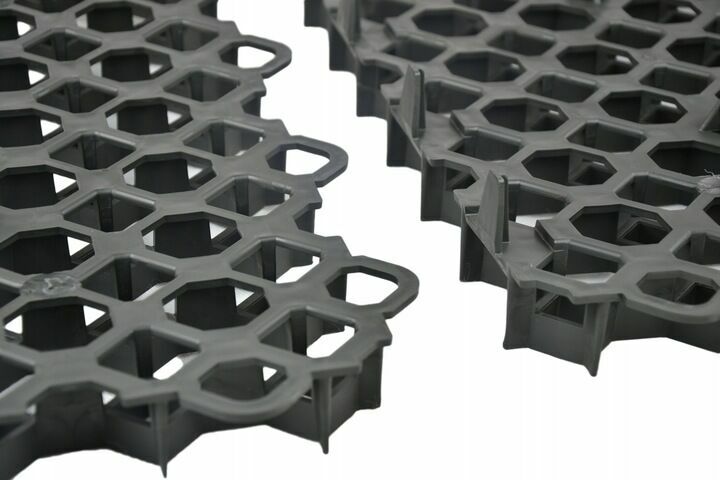 Instalacja jest szybka i łatwa. Poszczególne panele łączą się za pomocą zintegrowanych haków na krawędziach poszczególnych kratek, pozostawiając przestrzeń dylatacyjną. Konstrukcja jest mocna i jednocześnie w pełni ażurowa. Korzenie trawy mogą się idealnie się rozrastać w kratce, w każdym kierunku tworząc stabilna powierzchnie BIOLOGICZNIE CZYNNĄ.