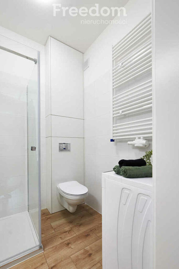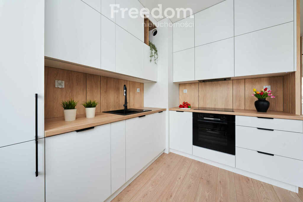 W pełni wyposażona kuchnia z nowoczesnym sprzętem AGD (pralka,