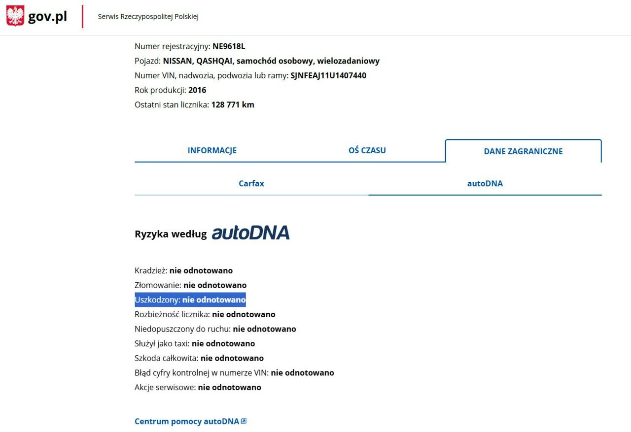 PONIŻEJ PODAJE DANE NIEZBĘDNE DO DARMOWEJ WERYFIKACJI HISTORII PREZENTOWANEGO AUTA NA STRONIE MINISTERSTWA TRANSPORTU
