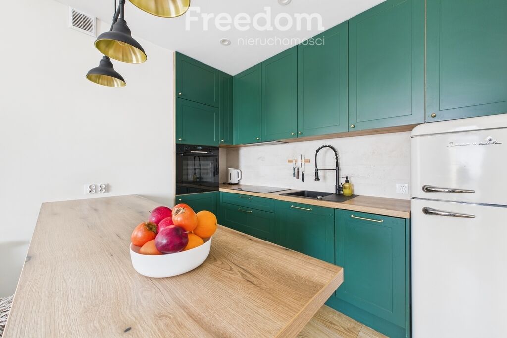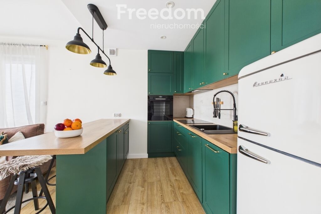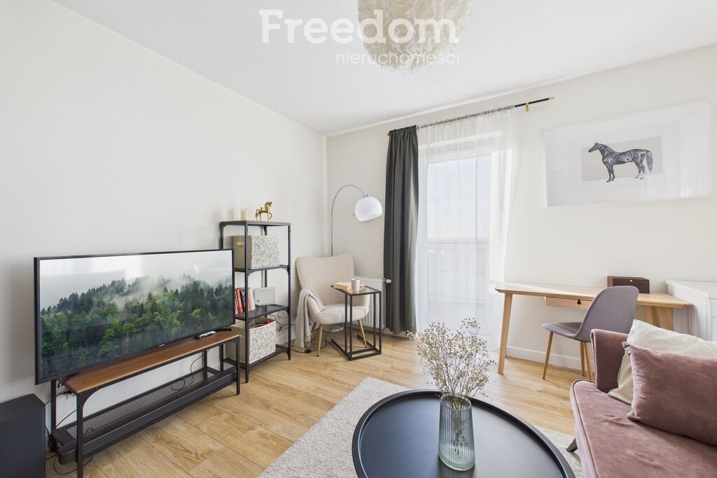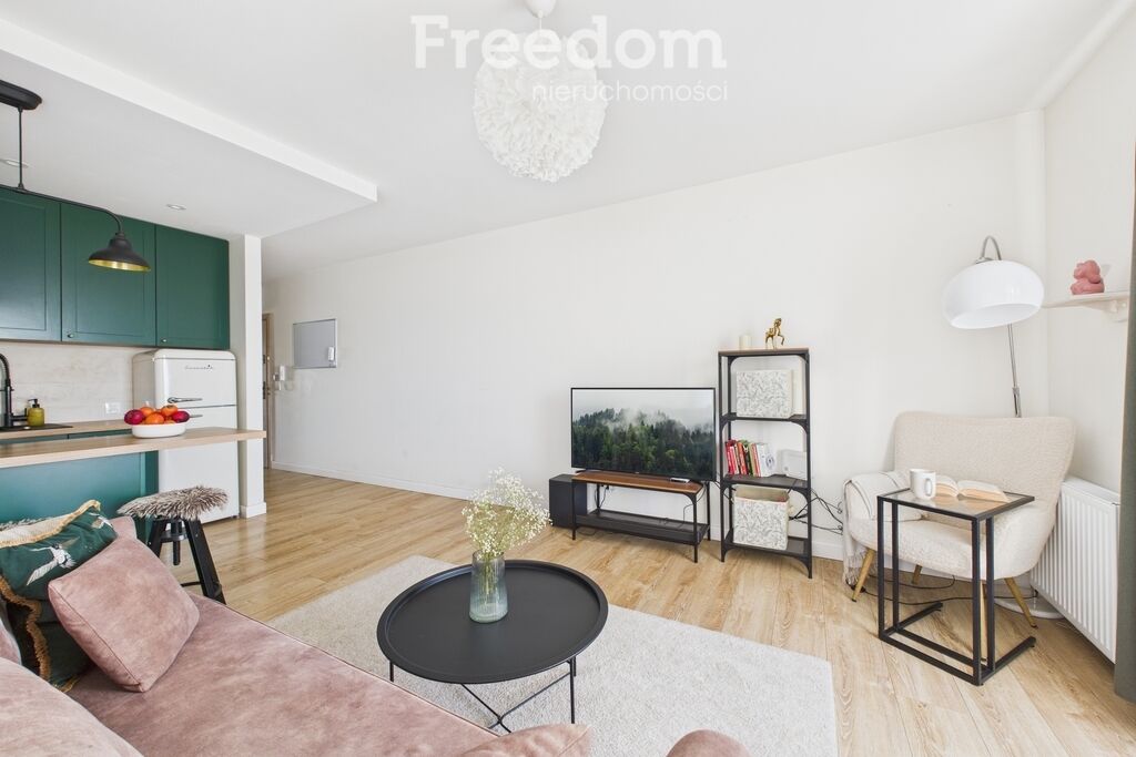Apartament jest w pełni wykończony i umeblowany. W salonie z aneksem