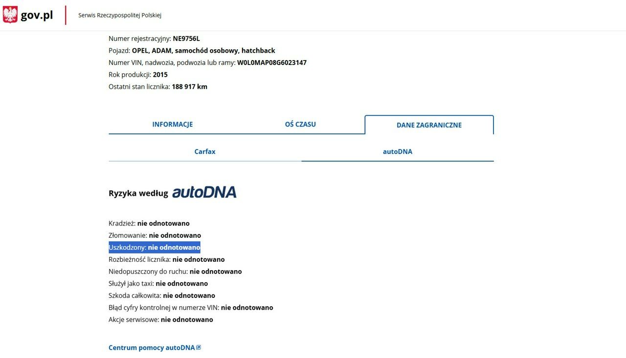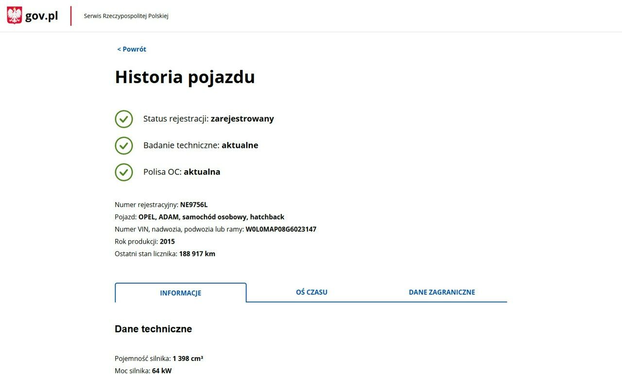 PONIŻEJ PODAJE DANE NIEZBĘDNE DO DARMOWEJ WERYFIKACJI HISTORII PREZENTOWANEGO AUTA NA STRONIE MINISTERSTWA TRANSPORTU