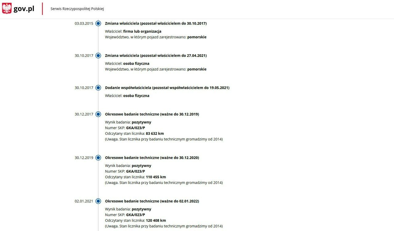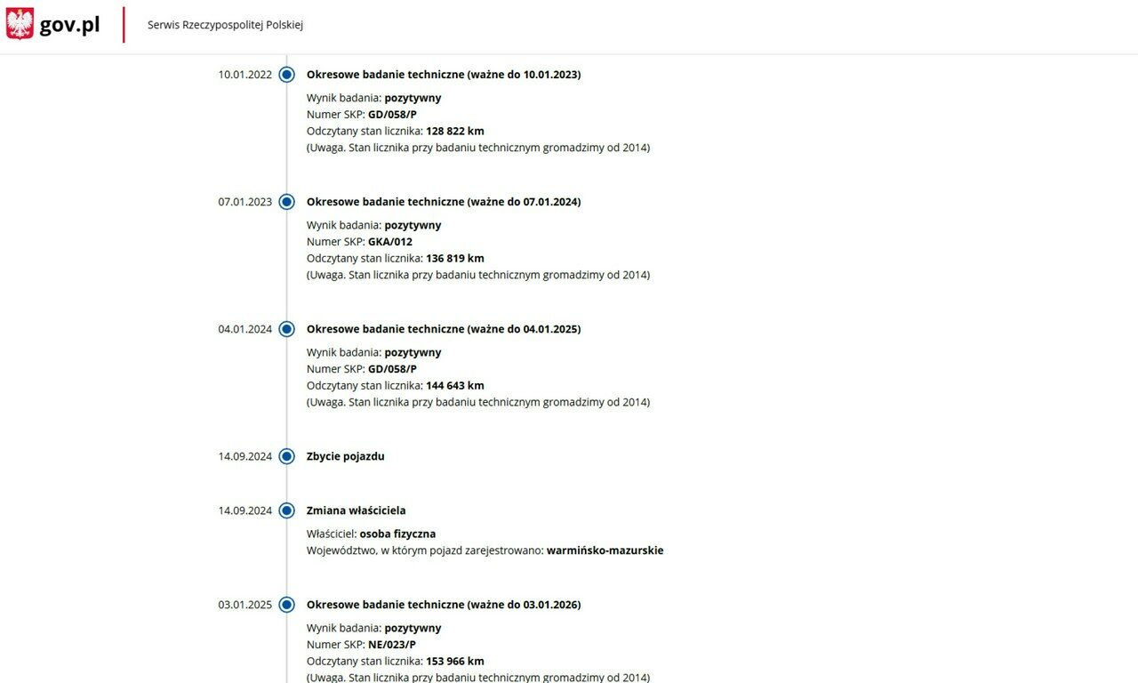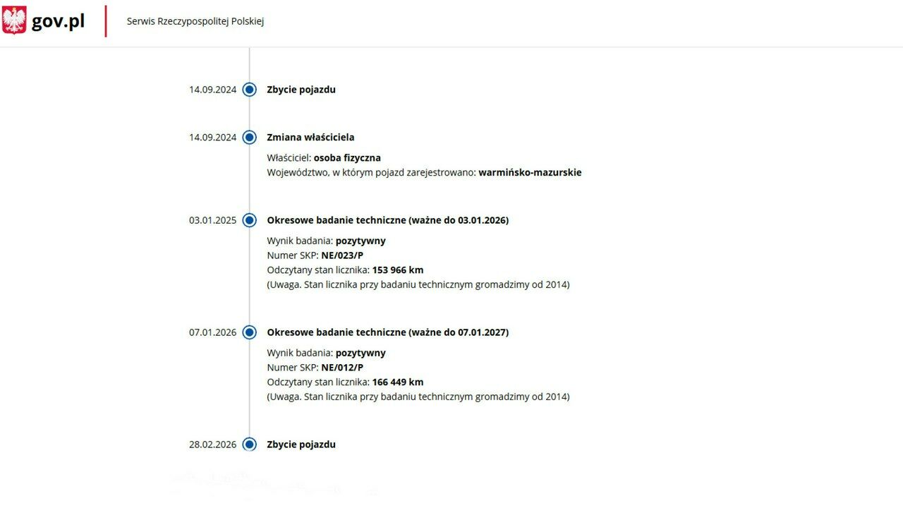 PONIŻEJ PODAJE DANE NIEZBĘDNE DO DARMOWEJ WERYFIKACJI HISTORII PREZENTOWANEGO AUTA NA STRONIE MINISTERSTWA TRANSPORTU