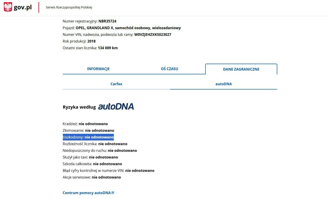 PONIŻEJ PODAJE DANE NIEZBĘDNE DO DARMOWEJ WERYFIKACJI HISTORII PREZENTOWANEGO AUTA NA STRONIE MINISTERSTWA TRANSPORTU