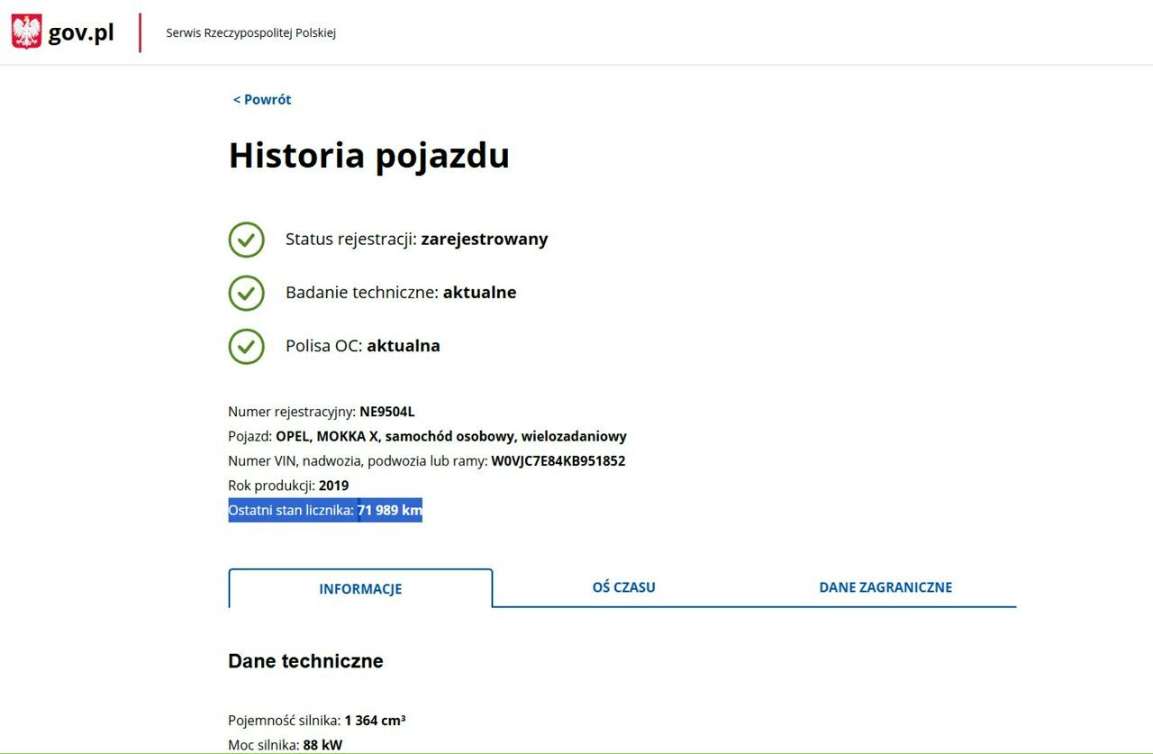 PONIŻEJ PODAJE DANE NIEZBĘDNE DO DARMOWEJ WERYFIKACJI HISTORII PREZENTOWANEGO AUTA NA STRONIE MINISTERSTWA TRANSPORTU