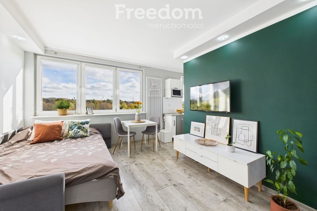 Ten przytulny lokal składa się z jednego pokoju, otwartej kuchni