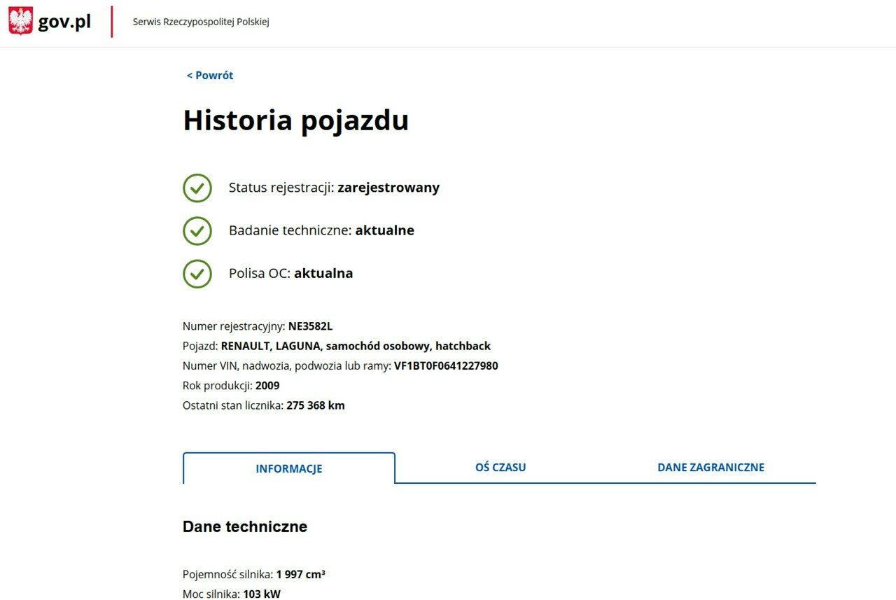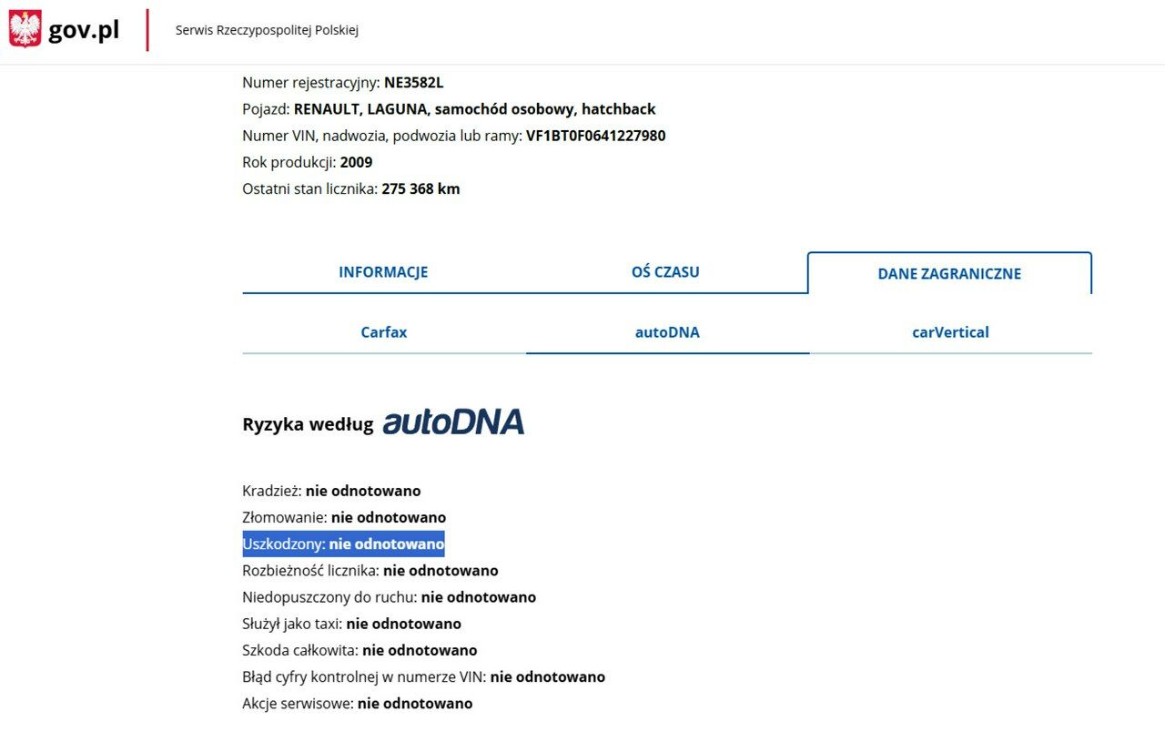 PONIŻEJ PODAJE DANE NIEZBĘDNE DO DARMOWEJ WERYFIKACJI HISTORII PREZENTOWANEGO AUTA NA STRONIE MINISTERSTWA TRANSPORTU
