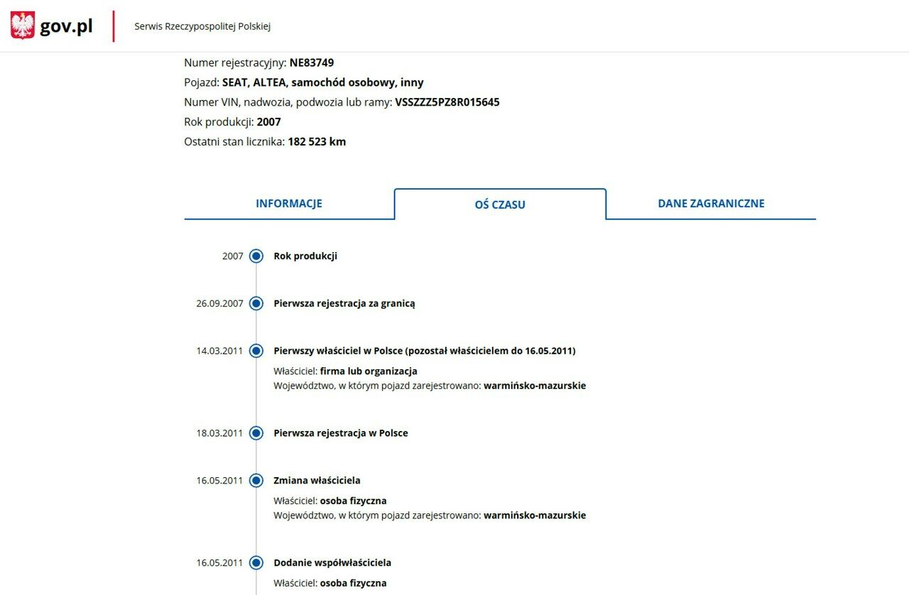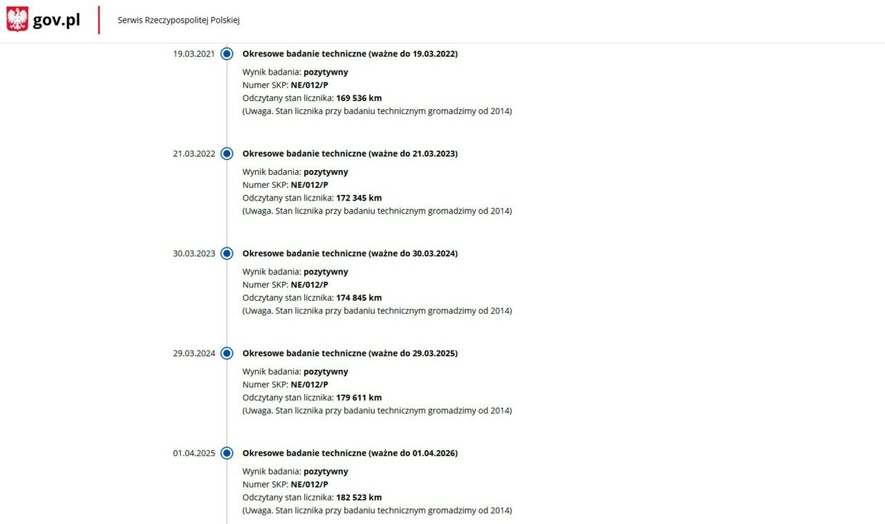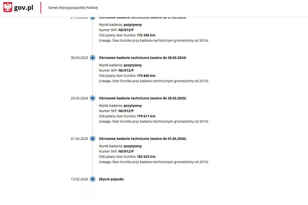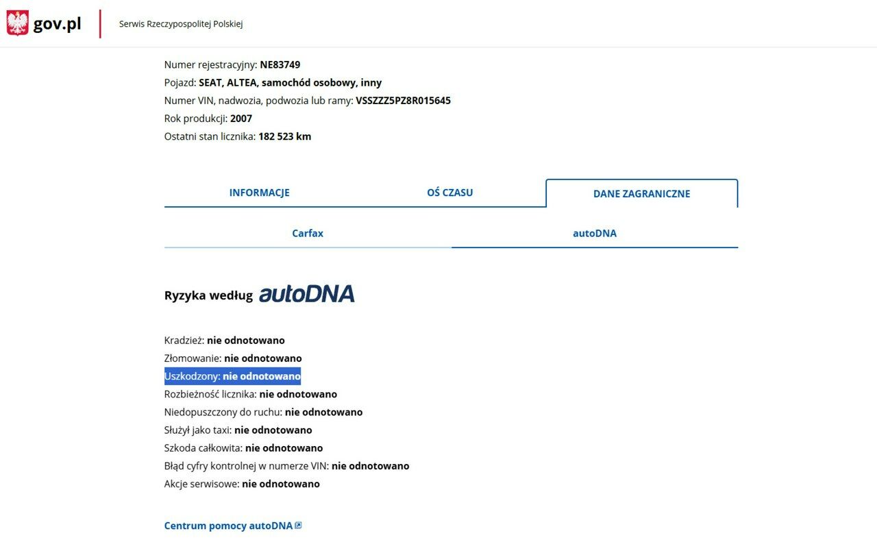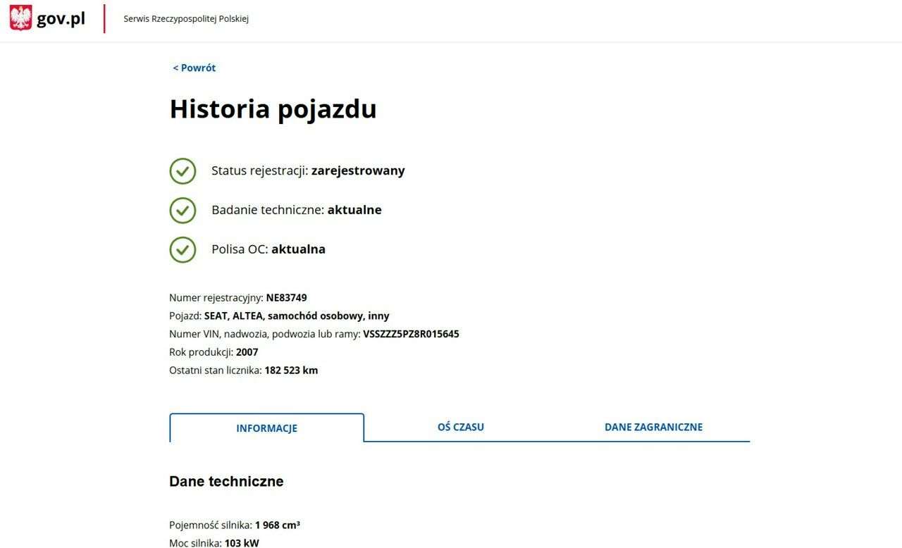 PONIŻEJ PODAJE DANE NIEZBĘDNE DO DARMOWEJ WERYFIKACJI HISTORII PREZENTOWANEGO AUTA NA STRONIE MINISTERSTWA TRANSPORTU