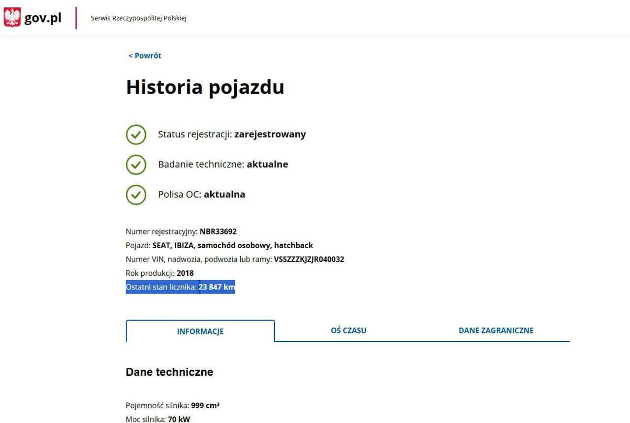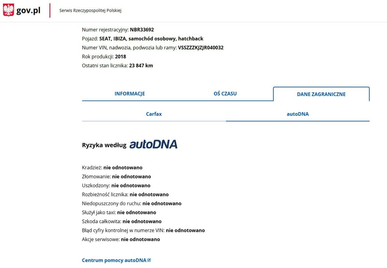 PONIŻEJ PODAJE DANE NIEZBĘDNE DO DARMOWEJ WERYFIKACJI HISTORII PREZENTOWANEGO AUTA NA STRONIE MINISTERSTWA TRANSPORTU
