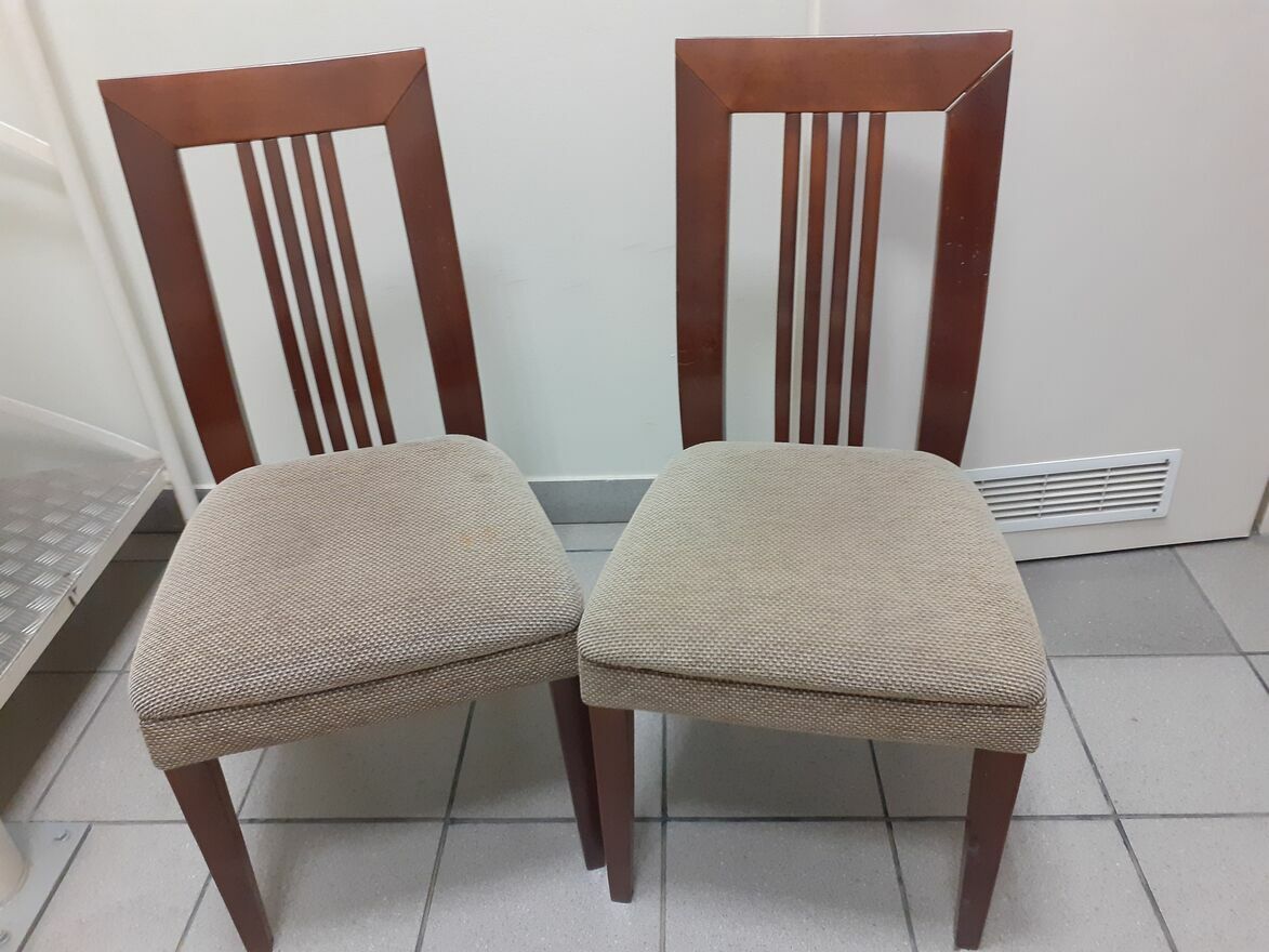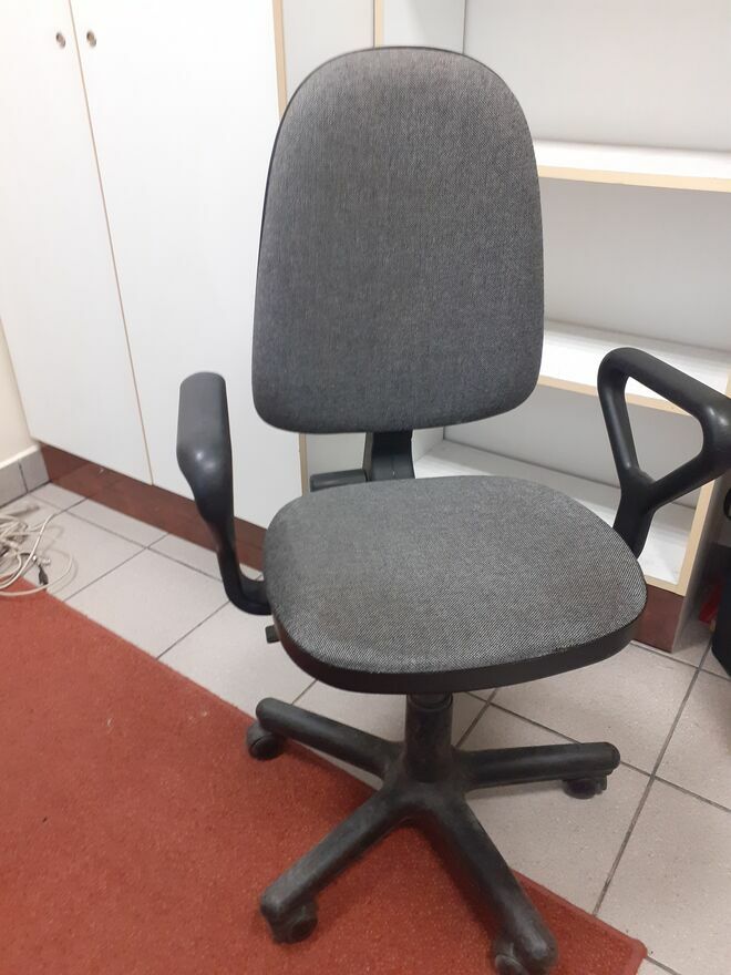 Fotel obrotowy na kółkach - 25zł., krzesła całe drewniane jasne (3 szt.) - po 25 zł, krzesła drewniane (ciemny brąz), tapicerowane (2 szt.) - po 25 zł., krzesła na stelażu stalowym (beżowe) 4 szt. - po 20 zł, krzesła na stelażu stalowym (szare) , 2 szt. - po 20 zł.