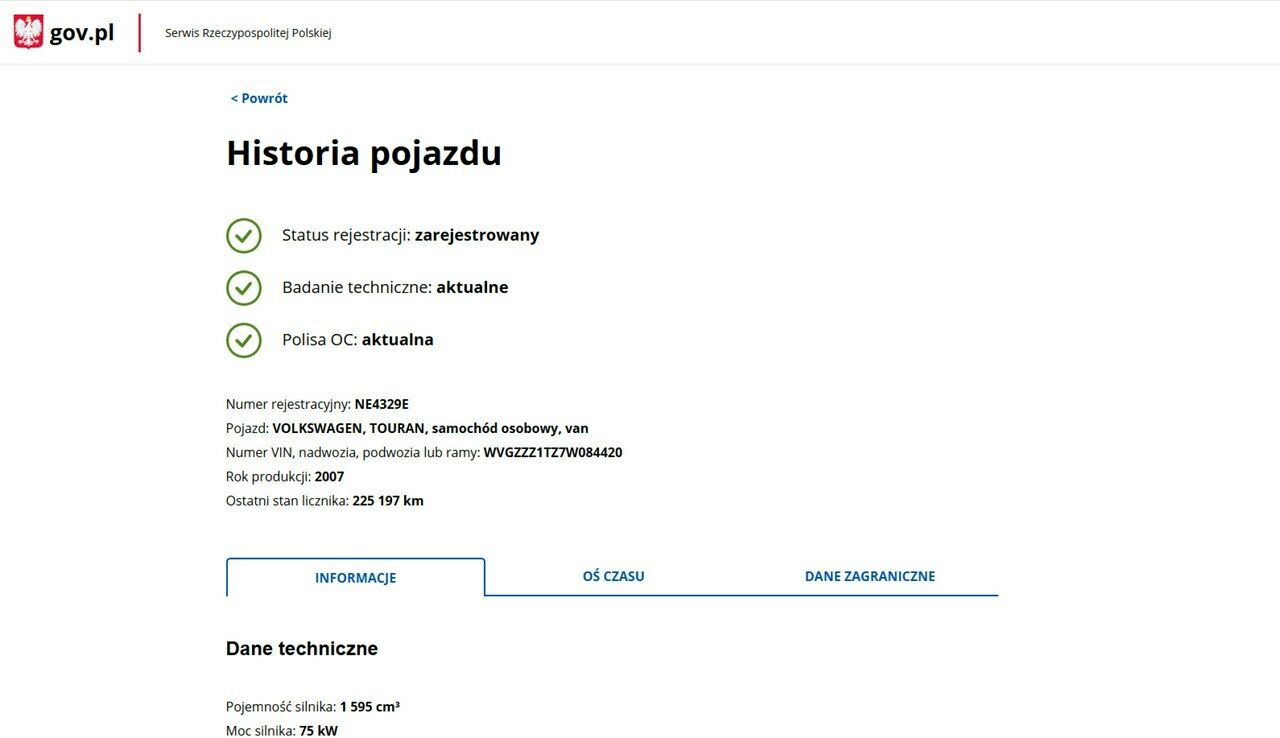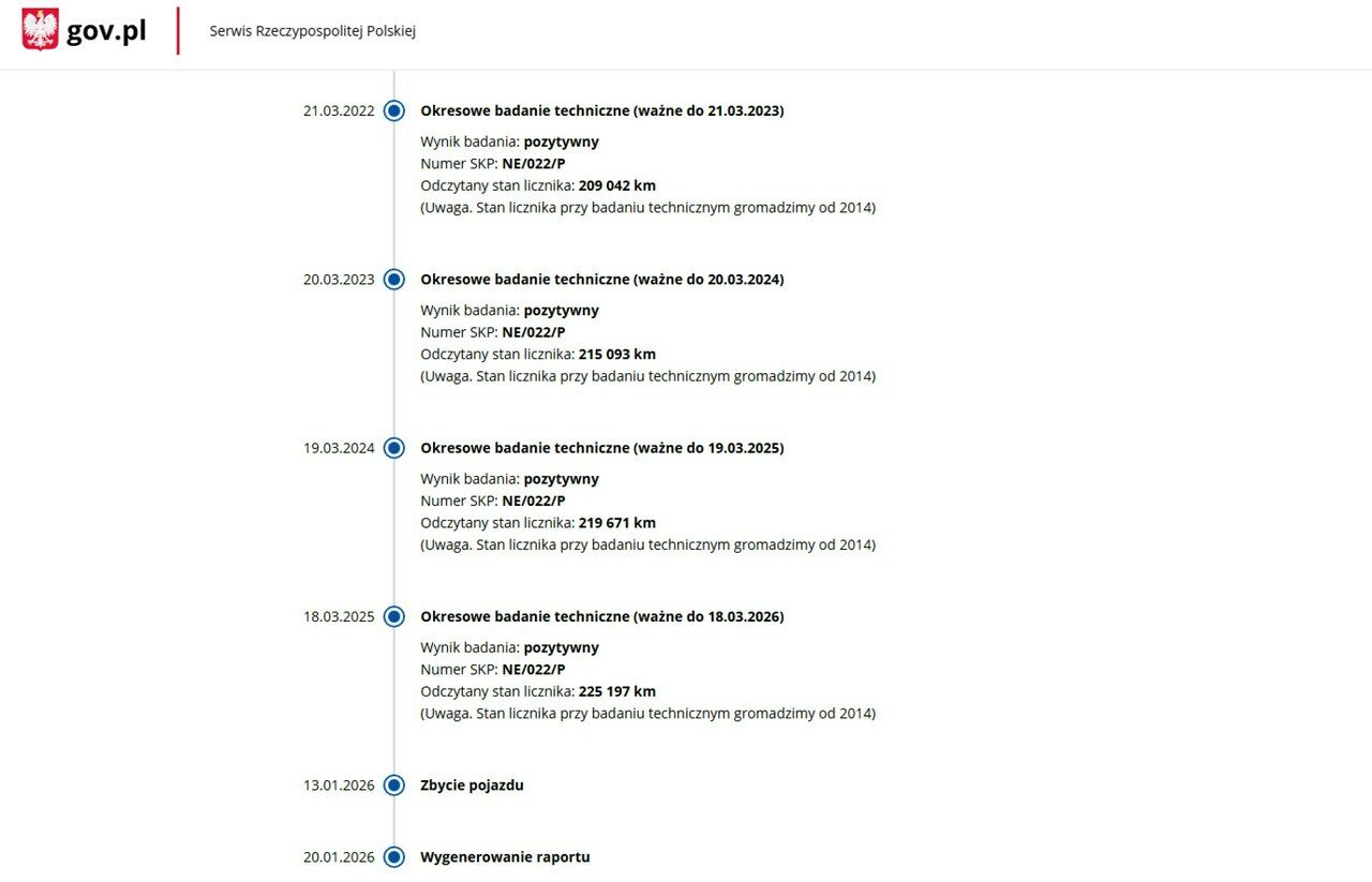 PONIŻEJ PODAJE DANE NIEZBĘDNE DO DARMOWEJ WERYFIKACJI HISTORII PREZENTOWANEGO AUTA NA STRONIE MINISTERSTWA TRANSPORTU