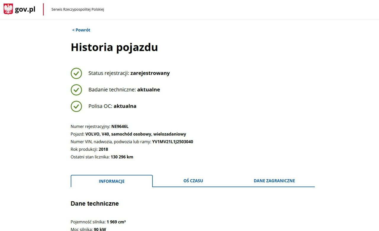 PONIŻEJ PODAJE DANE NIEZBĘDNE DO DARMOWEJ WERYFIKACJI HISTORII PREZENTOWANEGO AUTA NA STRONIE MINISTERSTWA TRANSPORTU