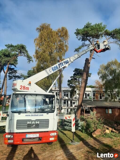 Oferujemy usługi:- wycinka i korekta drzew w miejscach trudno dostępnych, nad dachami, ogrodzeniami, przy liniach energetycznych itp, przy zastosowaniu podnośników koszowych.
