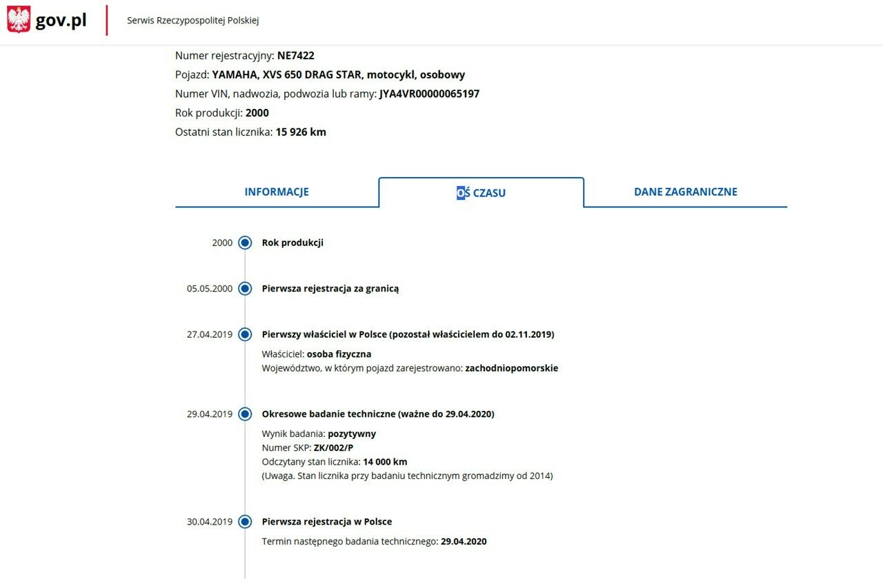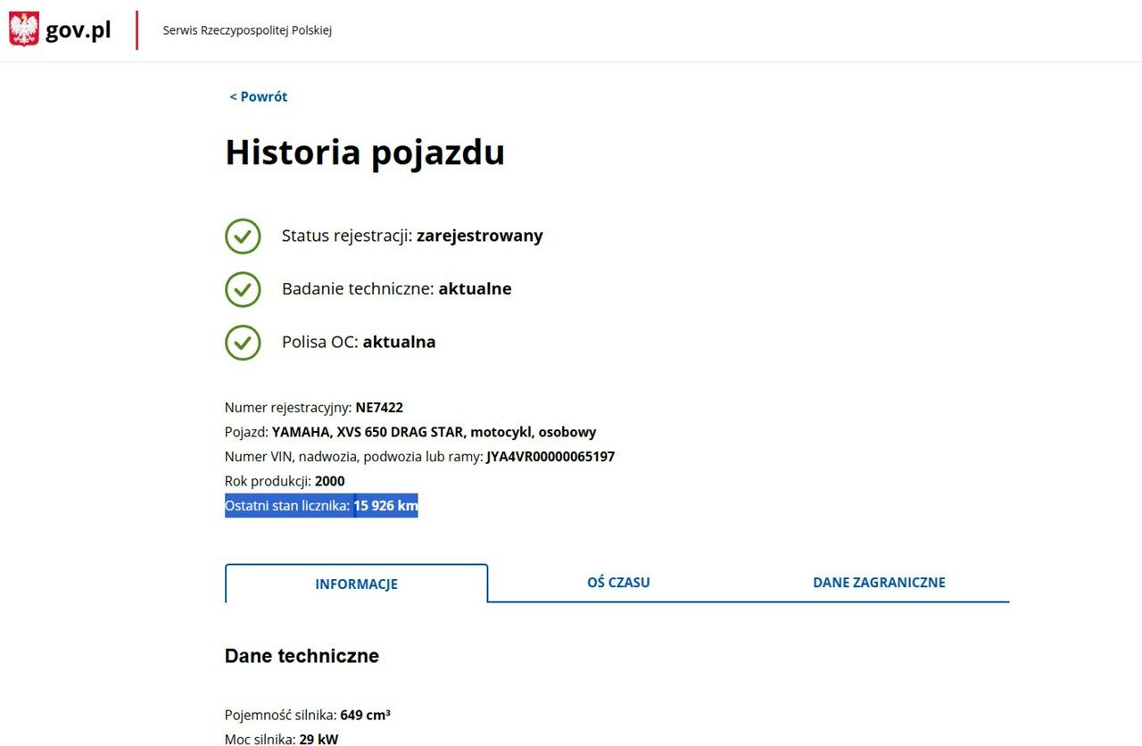 PONIŻEJ PODAJE DANE NIEZBĘDNE DO DARMOWEJ WERYFIKACJI HISTORII PREZENTOWANEGO MOTOCYKLA NA STRONIE MINISTERSTWA TRANSPORTU